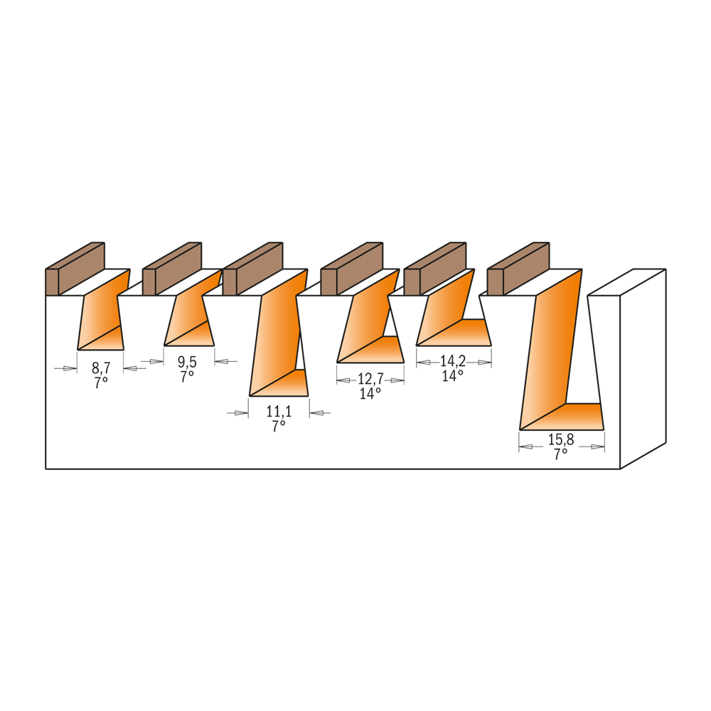 • Rybínové frézy slúžia na jednoduchú výrobu rybínových alebo tiež cinkových spojov dreva.