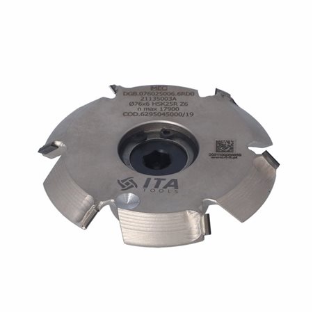 Fréza má vonkajšie priemery 76 mm a 70 mm (pravdepodobne pre rozdielne priemery reznej časti a tela) a je vybavená integrovaným rýchloupínacím systémom HSK25R, ktorý zabezpečuje rýchlu, presnú a stabilnú výmenu nástroja. Je určená pre pravotočivé stroje (RH). S reznou dĺžkou 6 mm a konfiguráciou Z=6 je ideálna na presné a čisté skosenie hrán.