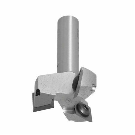 Fréza je vybavená tromi (Z3) vymeniteľnými HM (tvrdokovovými) nožmi. Tento systém umožňuje rýchlu a jednoduchú výmenu rezných hrán, čo výrazne zvyšuje efektivitu práce a znižuje náklady na údržbu. Robustné telo frézy a geometria Z3 zaručujú rýchly úber materiálu a minimalizujú vibrácie. Fréza je osadená stabilnou stopkou s priemerom 12 mm a dĺžkou 35 mm (S=12x35), ktorá zaisťuje pevné a bezpečné upnutie.