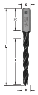 Úvod » KOLIKOVACIE VRTÁKY PREMIUM » Kolíkovací vrták nepriechodný (D=5 mm; l=30 mm; L=55,5 mm; S=8x20 mm) LH
