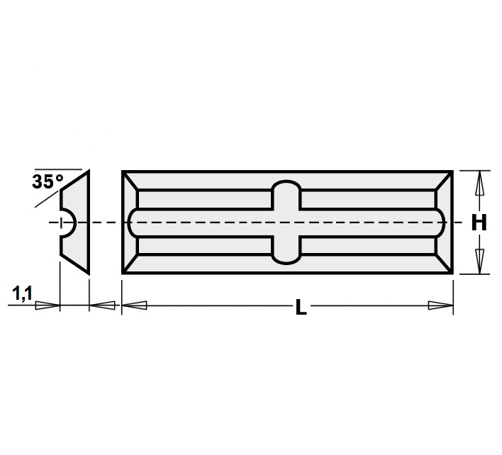 L - šírka čepele | ? – uhol sklonu noža